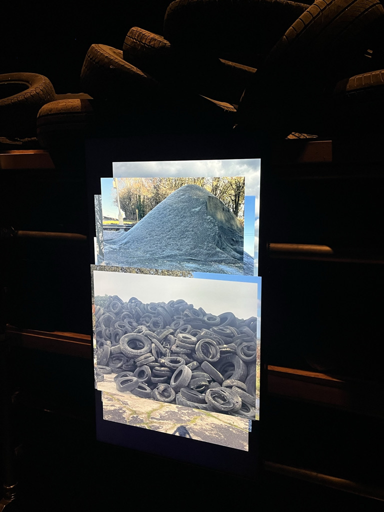 “In Simon Lee Dicker’s The Flatlands, the screen showing his film is nestled beneath the other side of the discarded tyre stack that towers up to the ceiling as viewers first enter the space. The film itself is a sustained piece of deft and subtle irony, playfully gesturing towards our predisposition to mythologise rural landscapes” 1